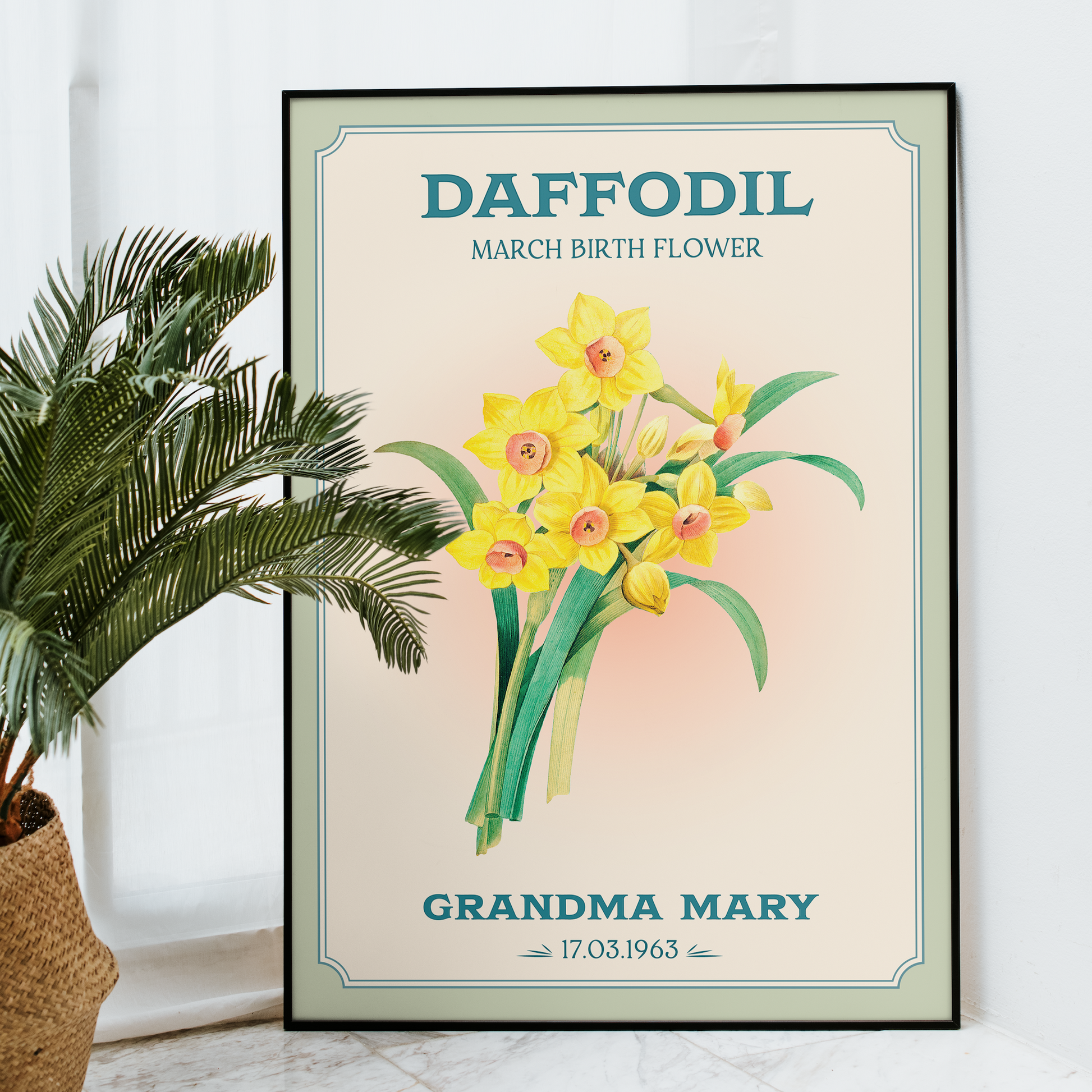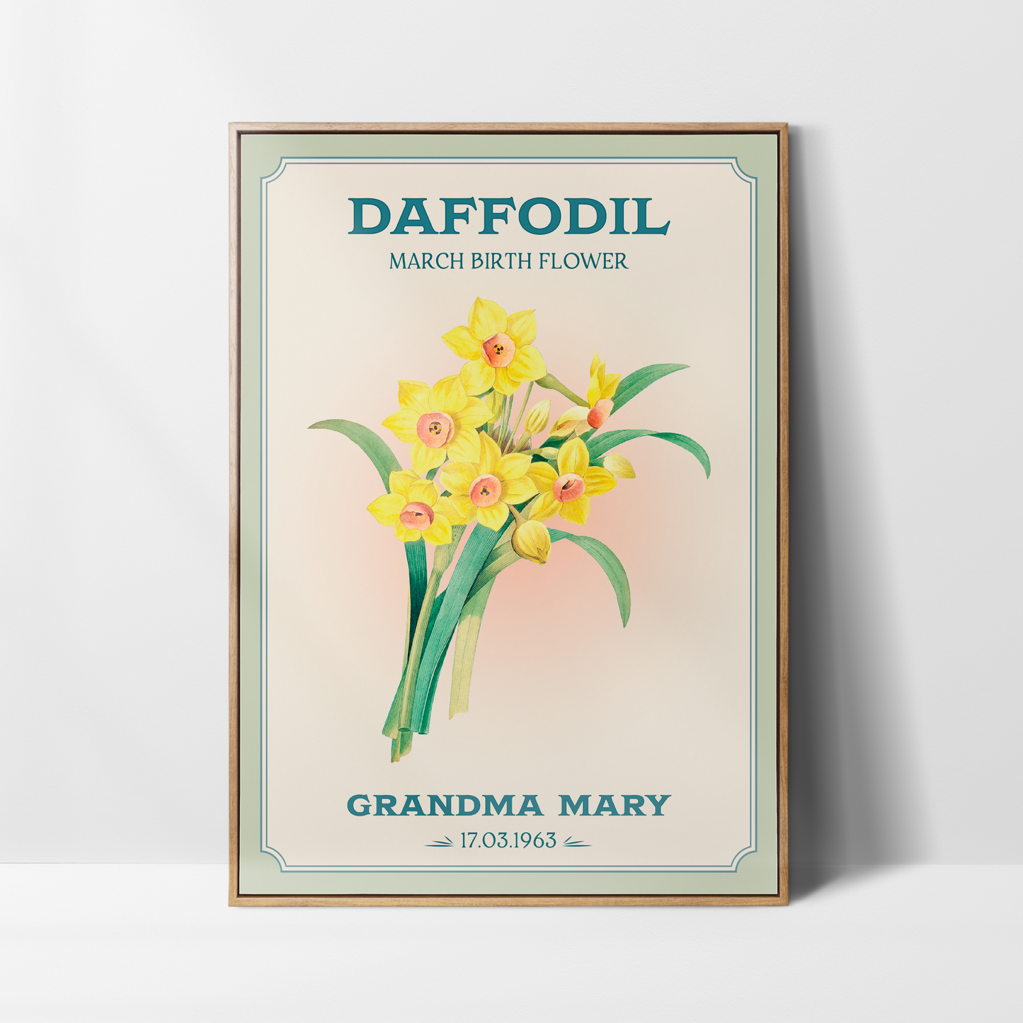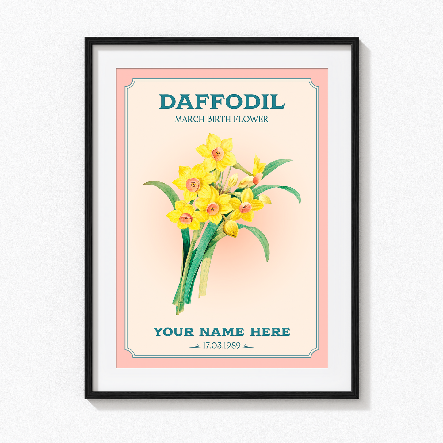 Daffodils are the birth flower for March, so this personalised art print makes the perfect gift for March birthdays. You can customise it with your recipient's name and birthdate to make it even more special and unique.
